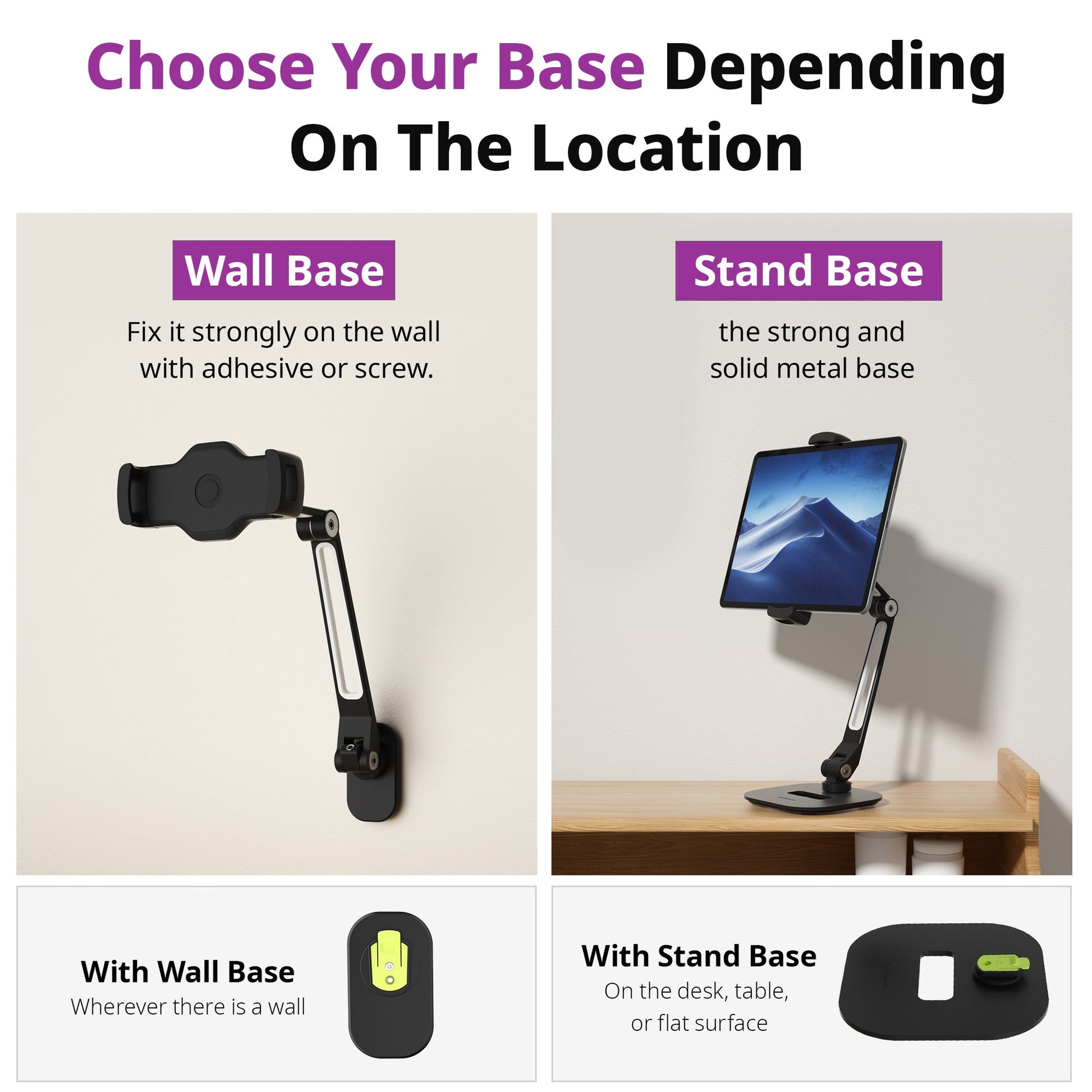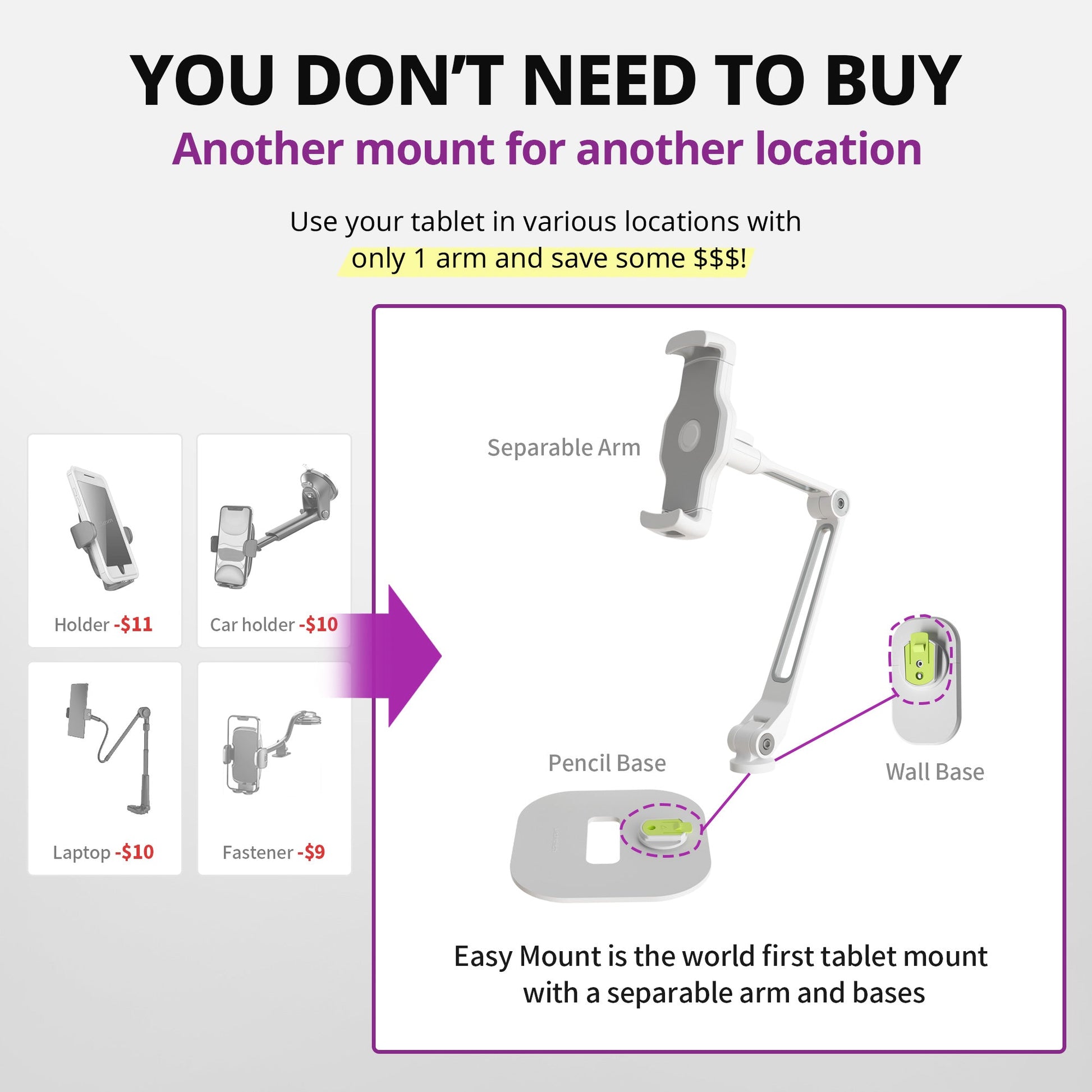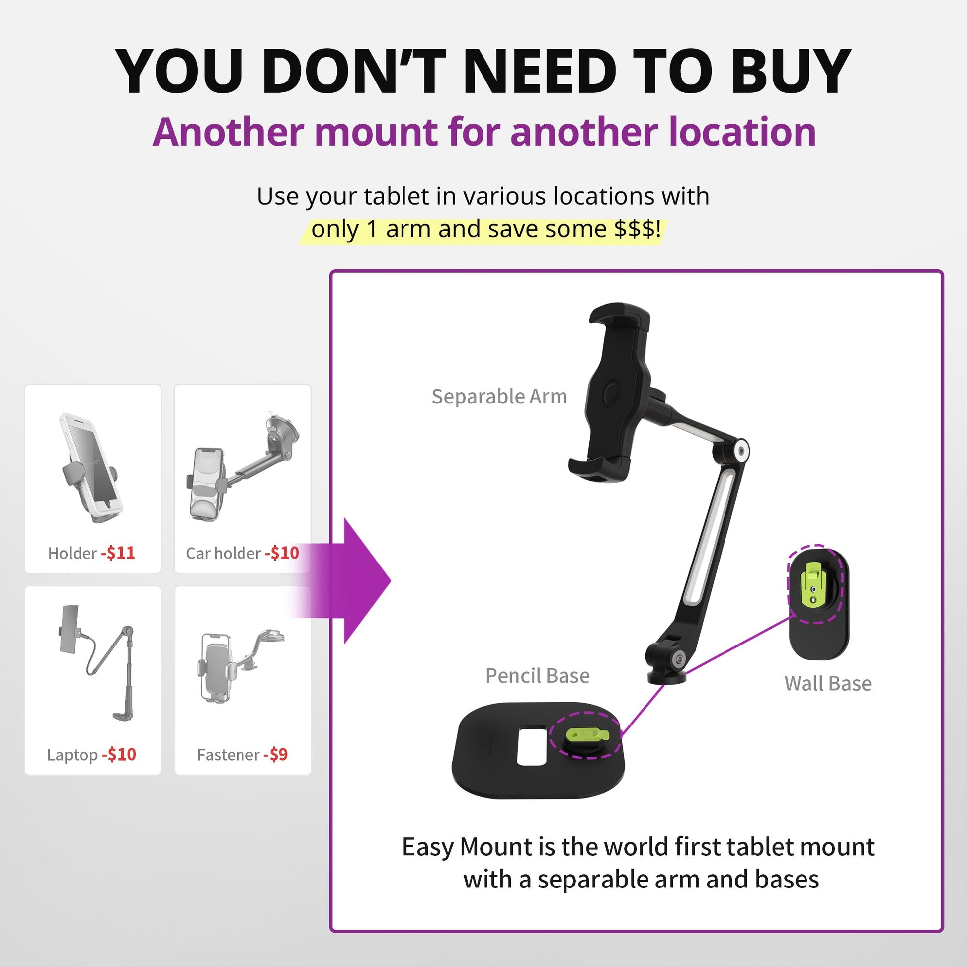 Easy Mount - Detachable Tablet & Cell Phone Holder (Long Arm / Stand Base + Wall Base)
