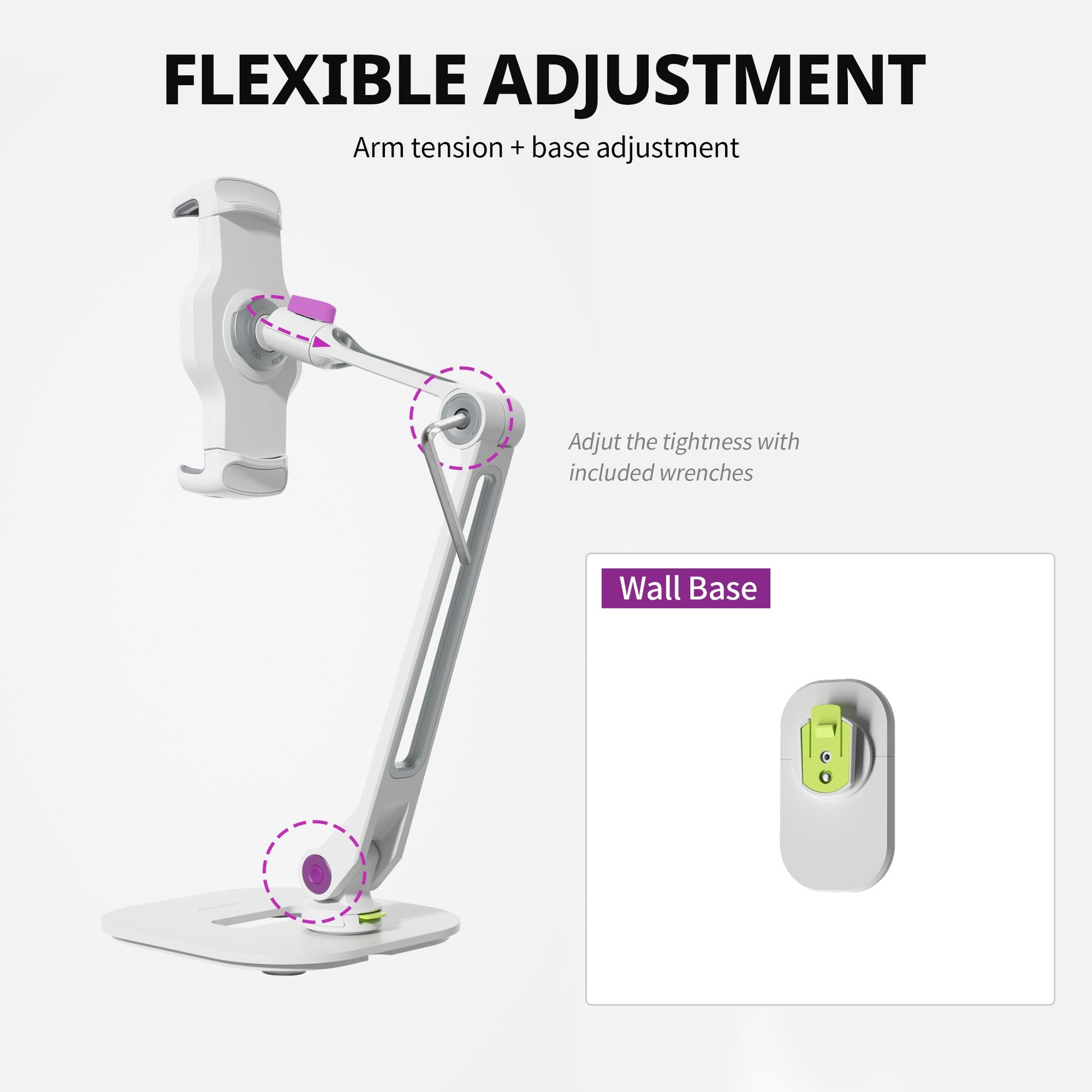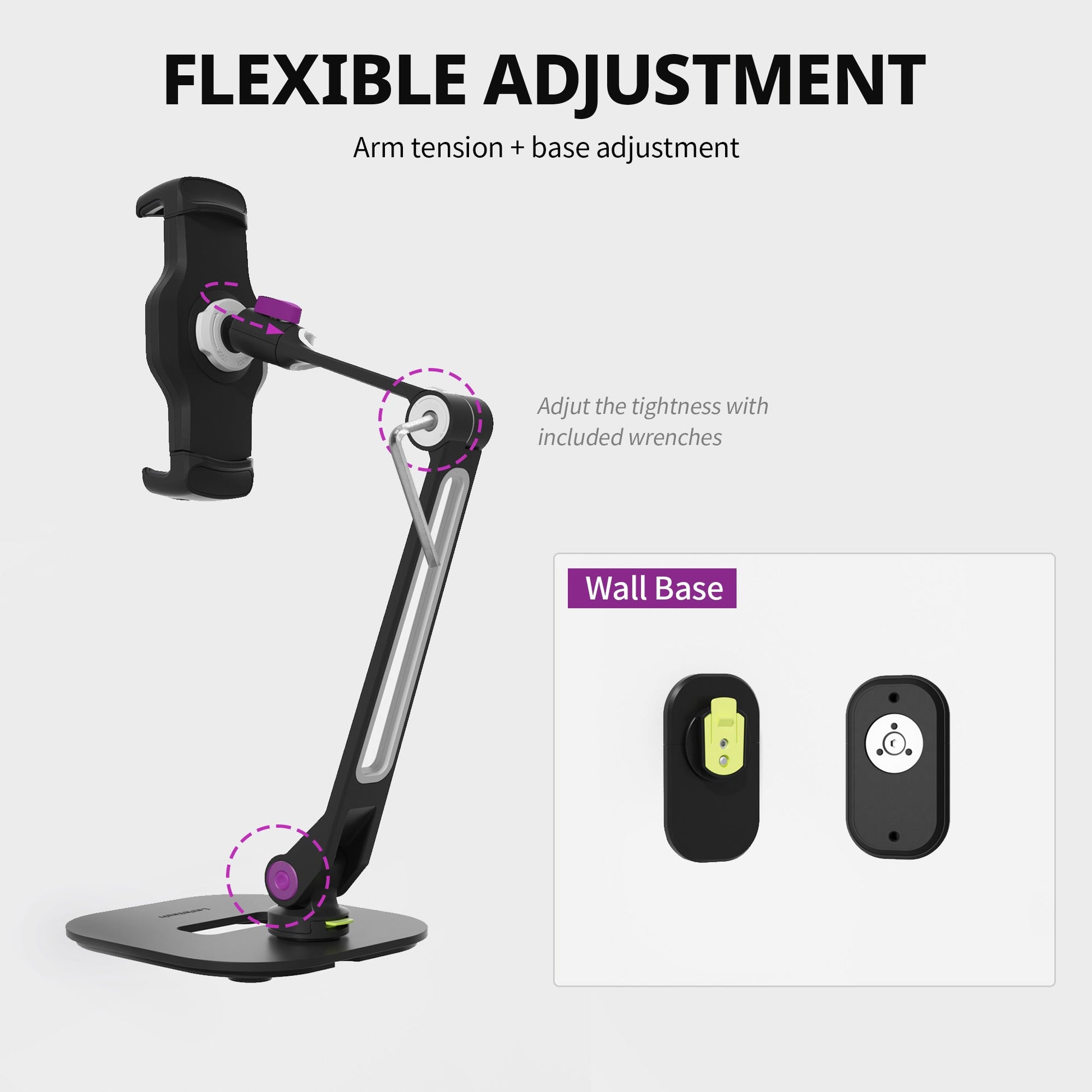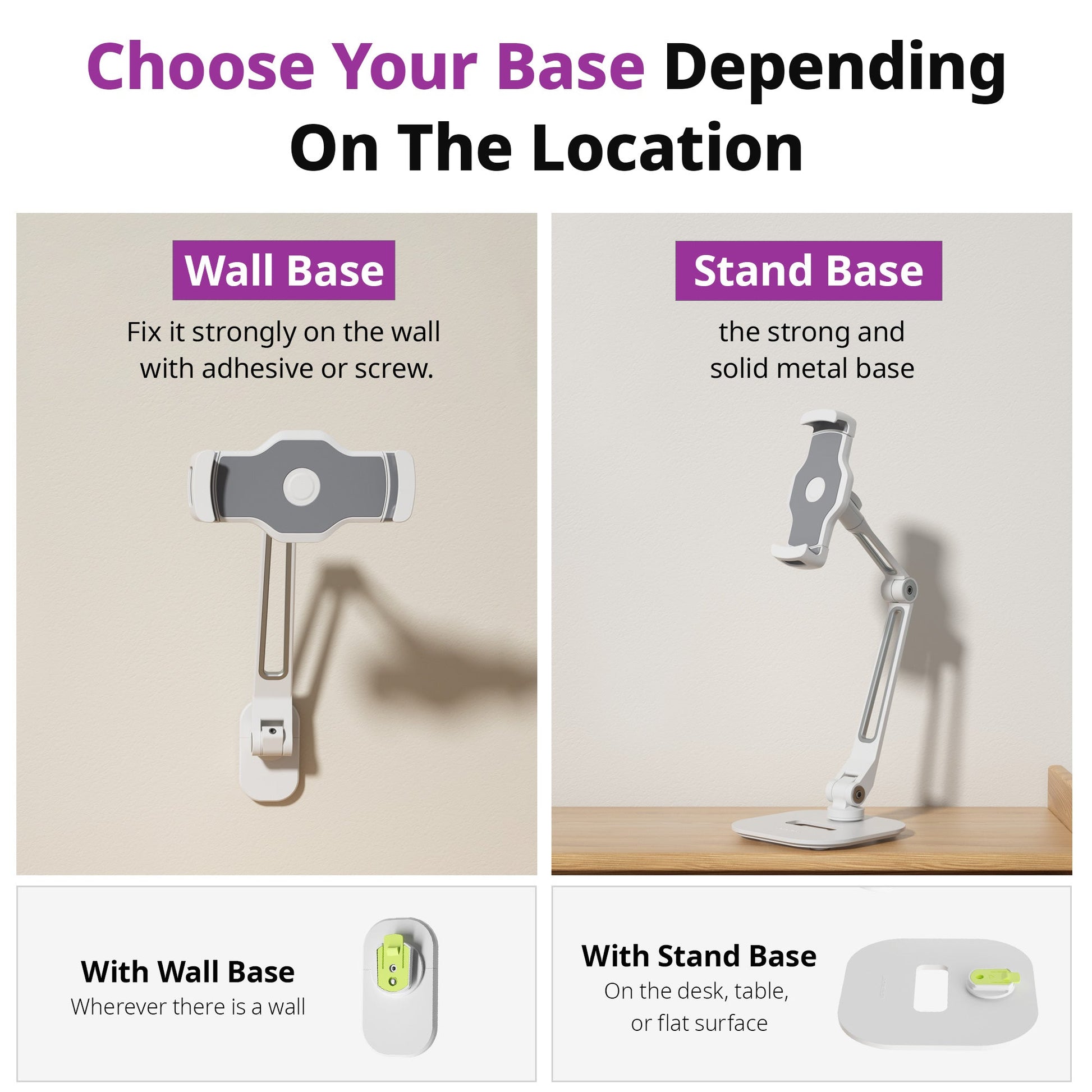 Easy Mount - Detachable Tablet & Cell Phone Holder (Long Arm / Stand Base + Wall Base)