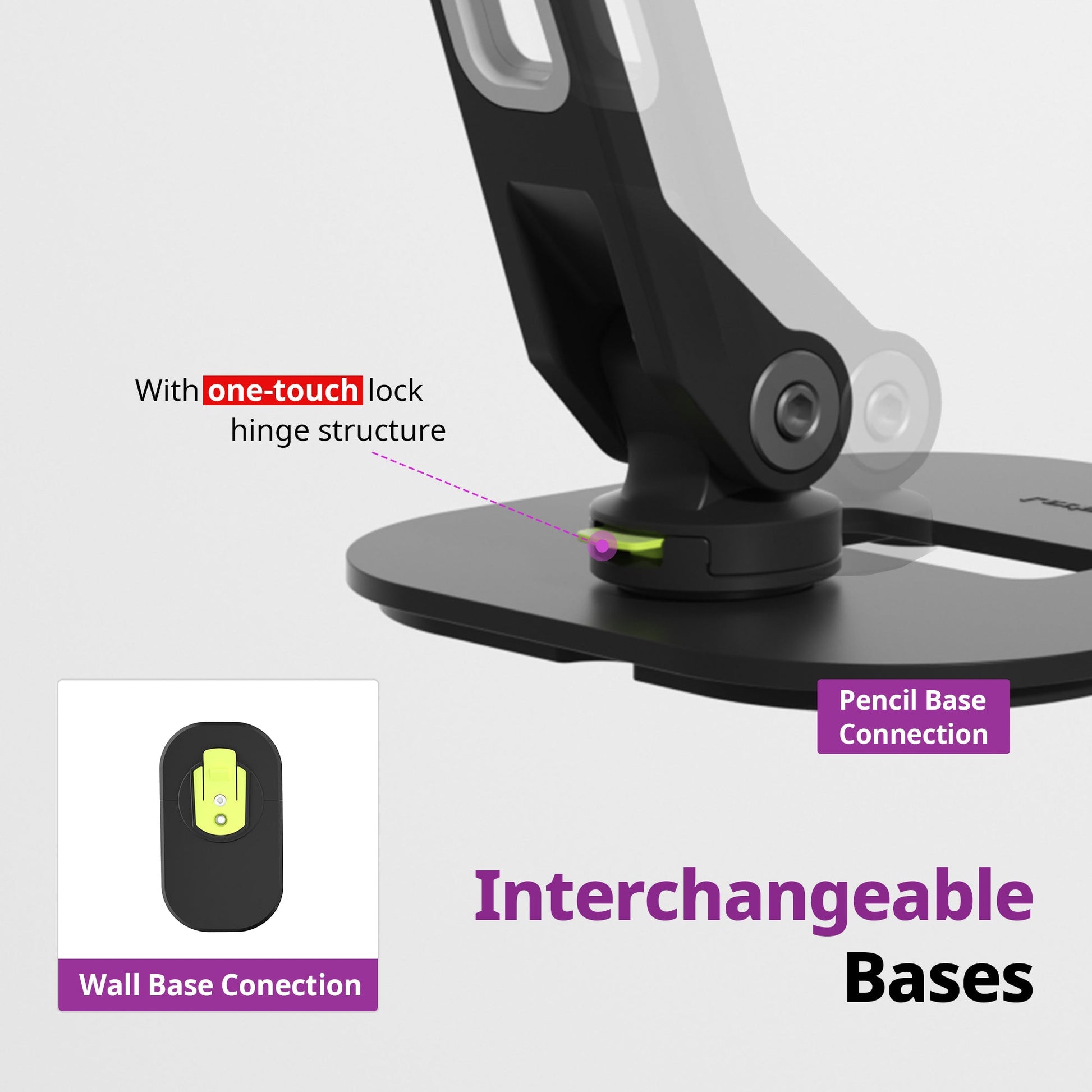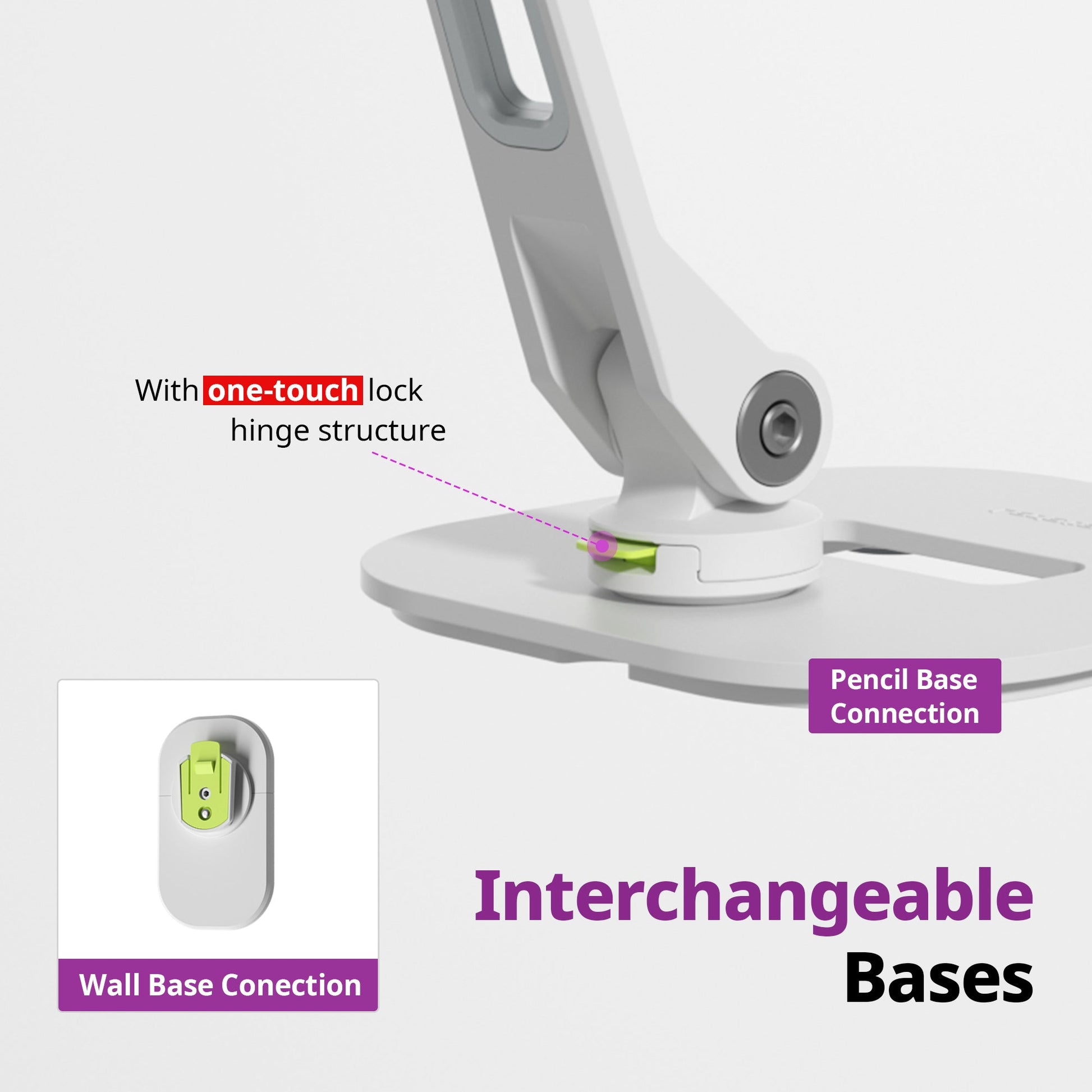 Locate various types of interchangeable bases in bedrooms, offices, or cars, and with only one arm, use your tablet in various locations. No need to buy another mount.