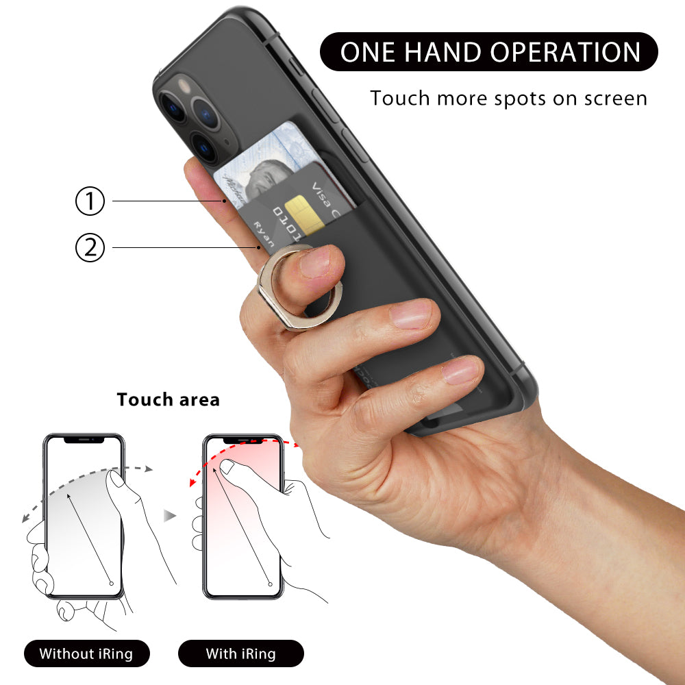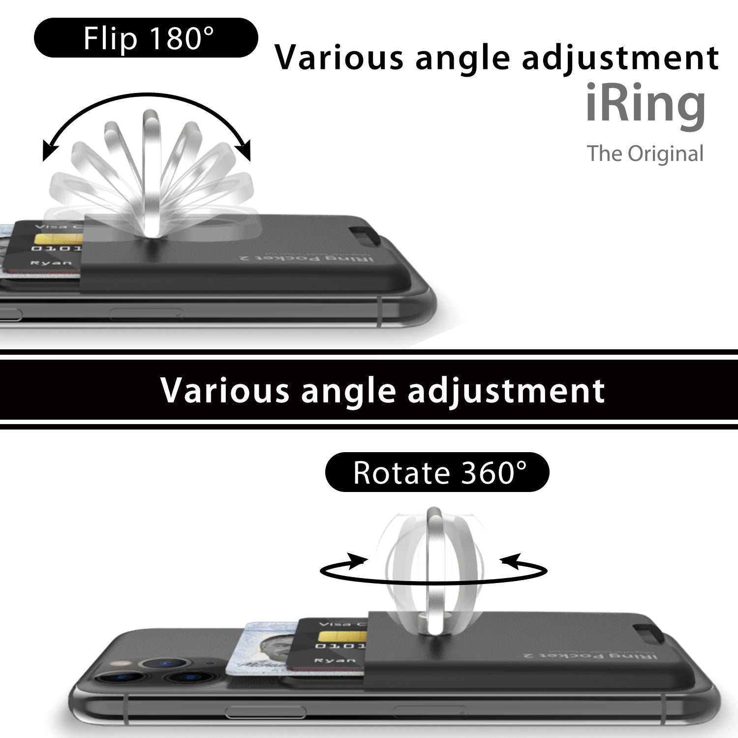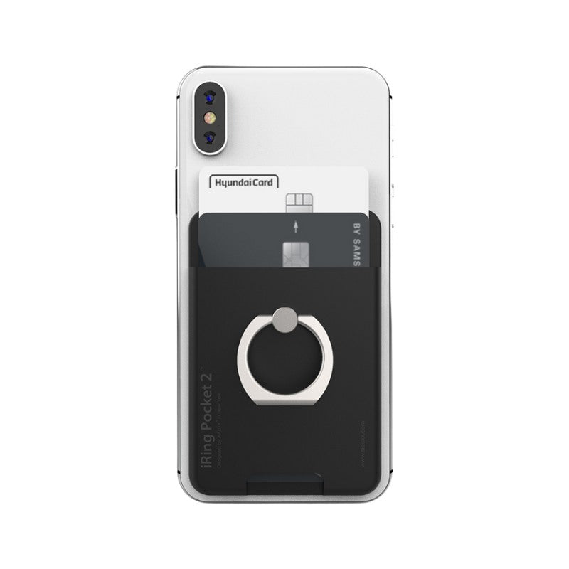Simple, secure, and sleek. iRing Pocket seamlessly combines a secured phone ring holder, mobile kick-stand, and cardholder all into one to enhance your everyday convenience. This version can hold 2 cards.