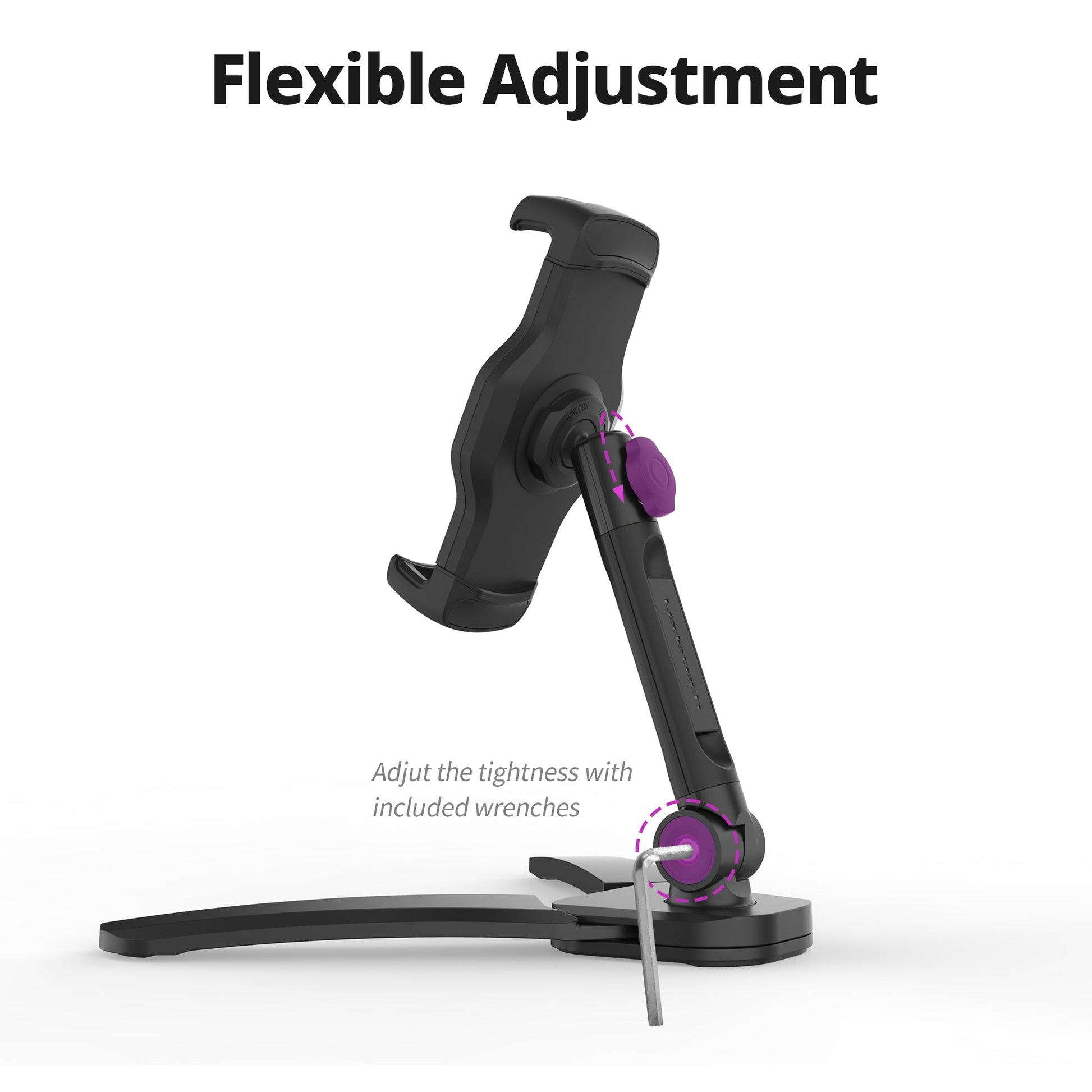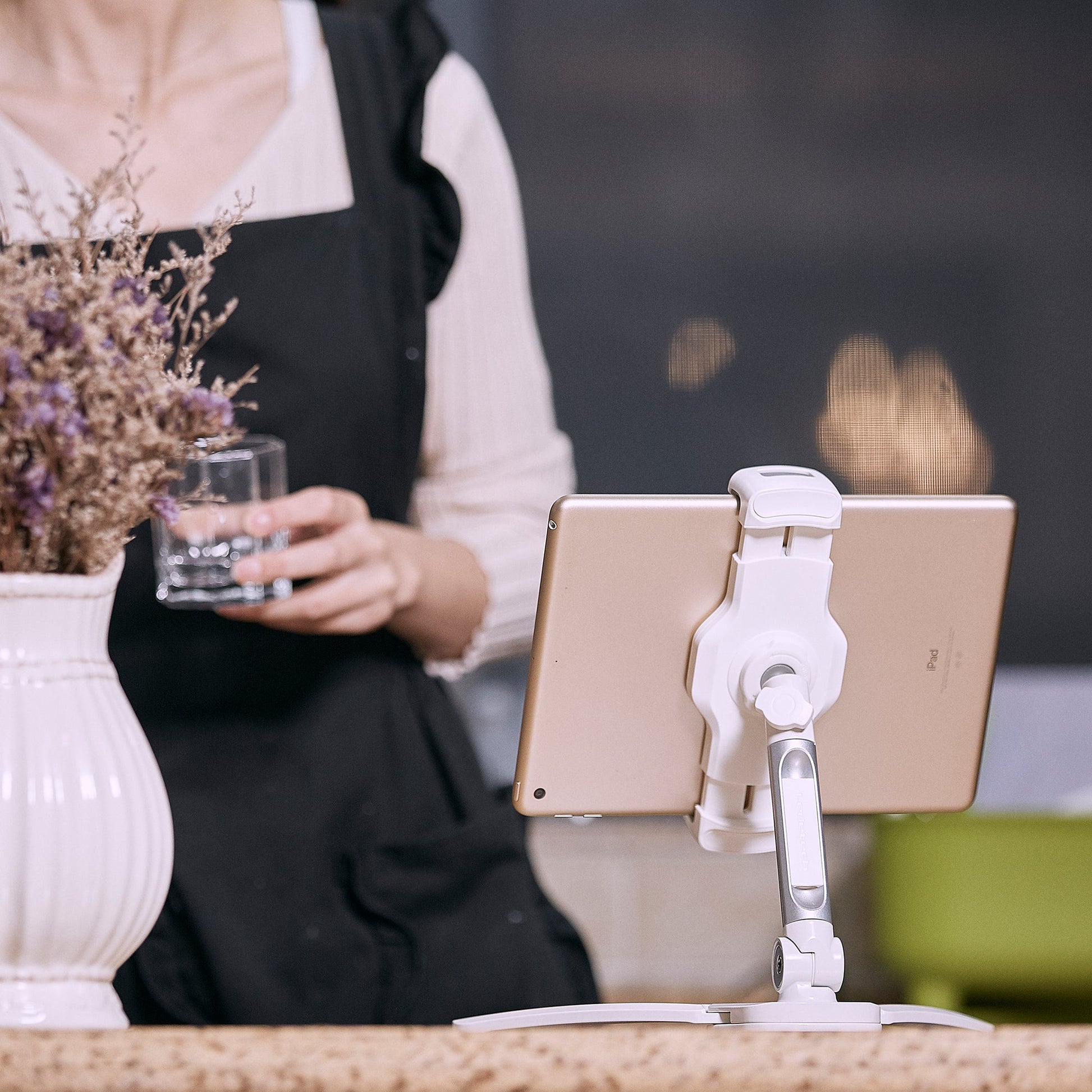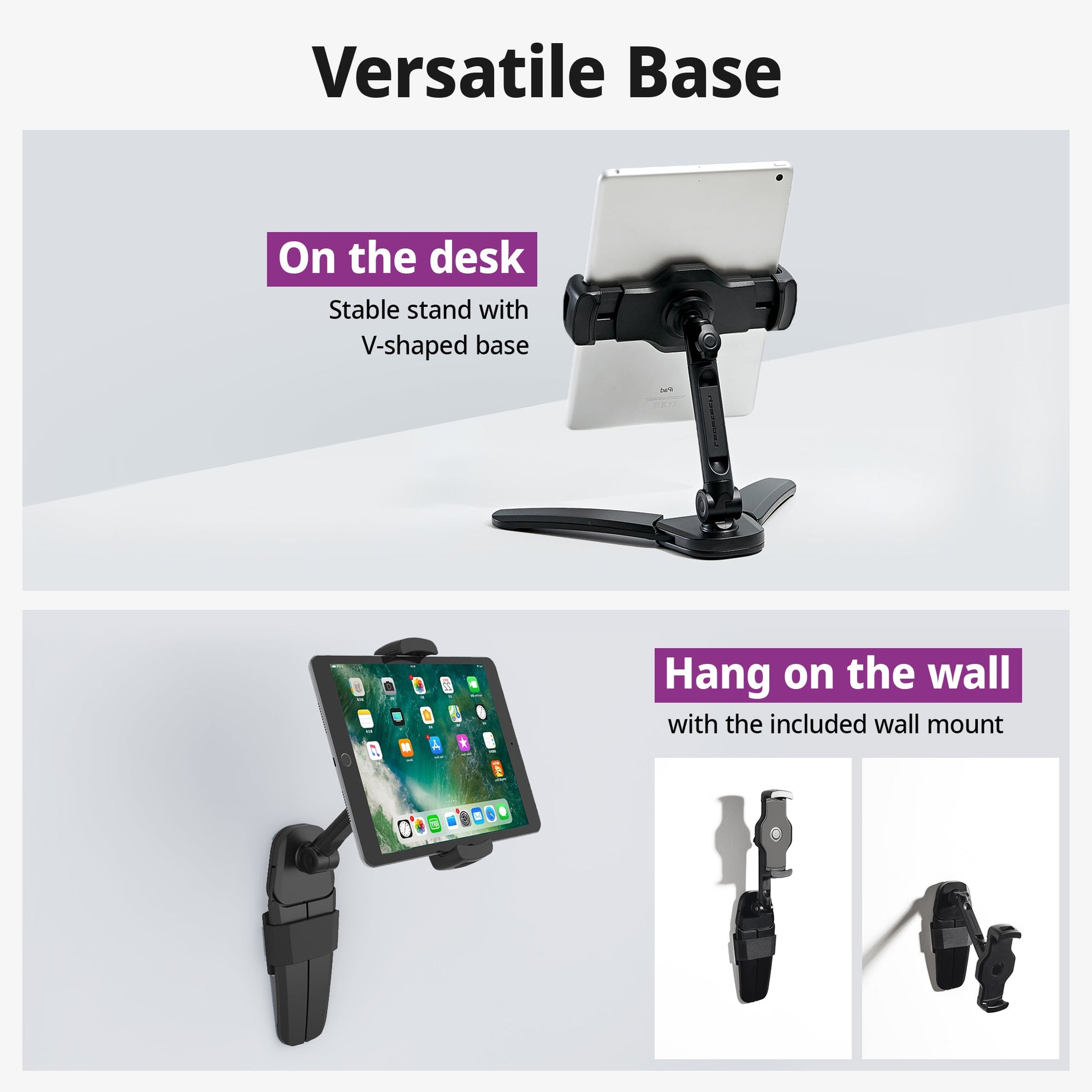 With a stable V-shaped base stand and a non-slip rubber pad underneath, your productivity will be enhanced whether using a tablet or cell. Use the iRing Smart Mount tablet monitor while at work or for watching your favorite movie in bed. Due to the stands clamp-free design, enjoy infinite possibilities of use. What's more, use the available wall mount for convenient wall attachment.