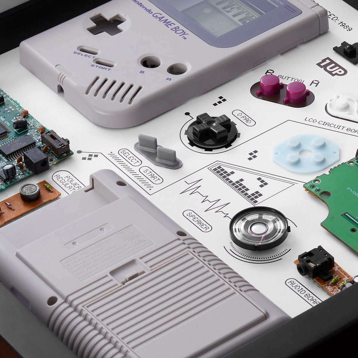 The XreArt Game Boy Original Frame is a handcrafted tribute to the iconic 1989 handheld console that revolutionized portable gaming. Celebrating its historical significance, this artwork showcases the Game Boy’s disassembled components, including a nod to Tetris, the game that contributed to its immense success by captivating players of all ages. Measuring 328 x 328 x 38.5 mm (12.9 x 12.9 x 1.5 inches) with a template paper size of 300 x 300 mm (11.8 x 11.8 inches), the frame is meticulously crafted through a process of sourcing pre-owned consoles, disassembling, cleaning, sterilizing, redesigning, and framing. Each frame's Gameboy components are real. This nostalgic collectible is the perfect keepsake or gift for gaming enthusiasts, celebrating a pivotal moment in gaming history.